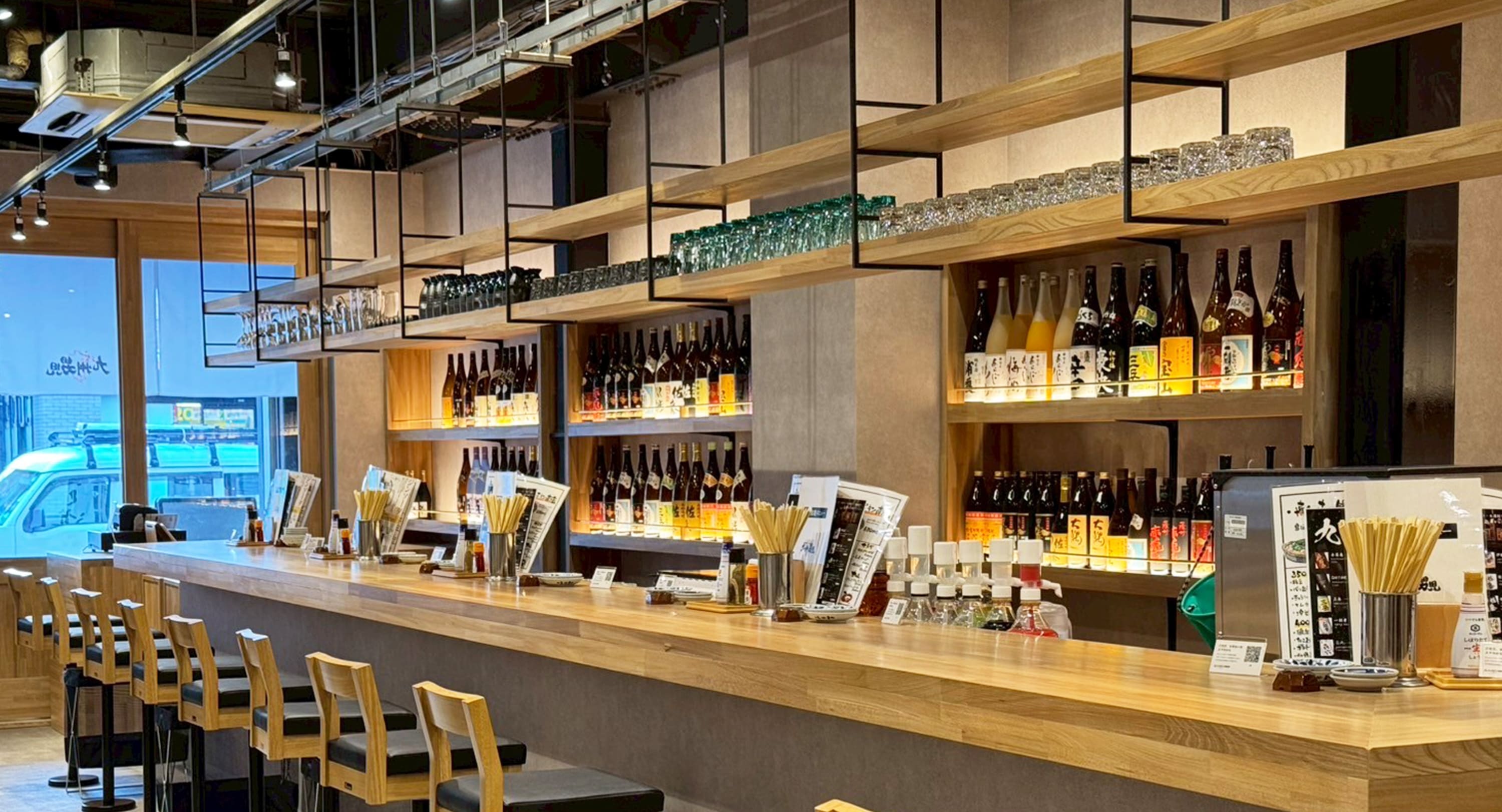 カテゴリー 店舗内外装 施工場所 群馬県前橋市 施工完了年月 2025年2月 お客様からのご相談・ご注文内容 ネオ大衆酒場のイメージをベースにいちから店内デザインをつくる、オペレーションの向上を実現する導線設計、集客アップの為の施策(ファサード)の向上。 改善したポイント 気軽に立ち寄れるお店の雰囲気、収容人数の拡大、居酒屋+BAR(大人数でもおひとり様)店前から店内の活気が伝わる店前デザイン、店内の活気が伝わるワンフロア設計(収容人数も大)。